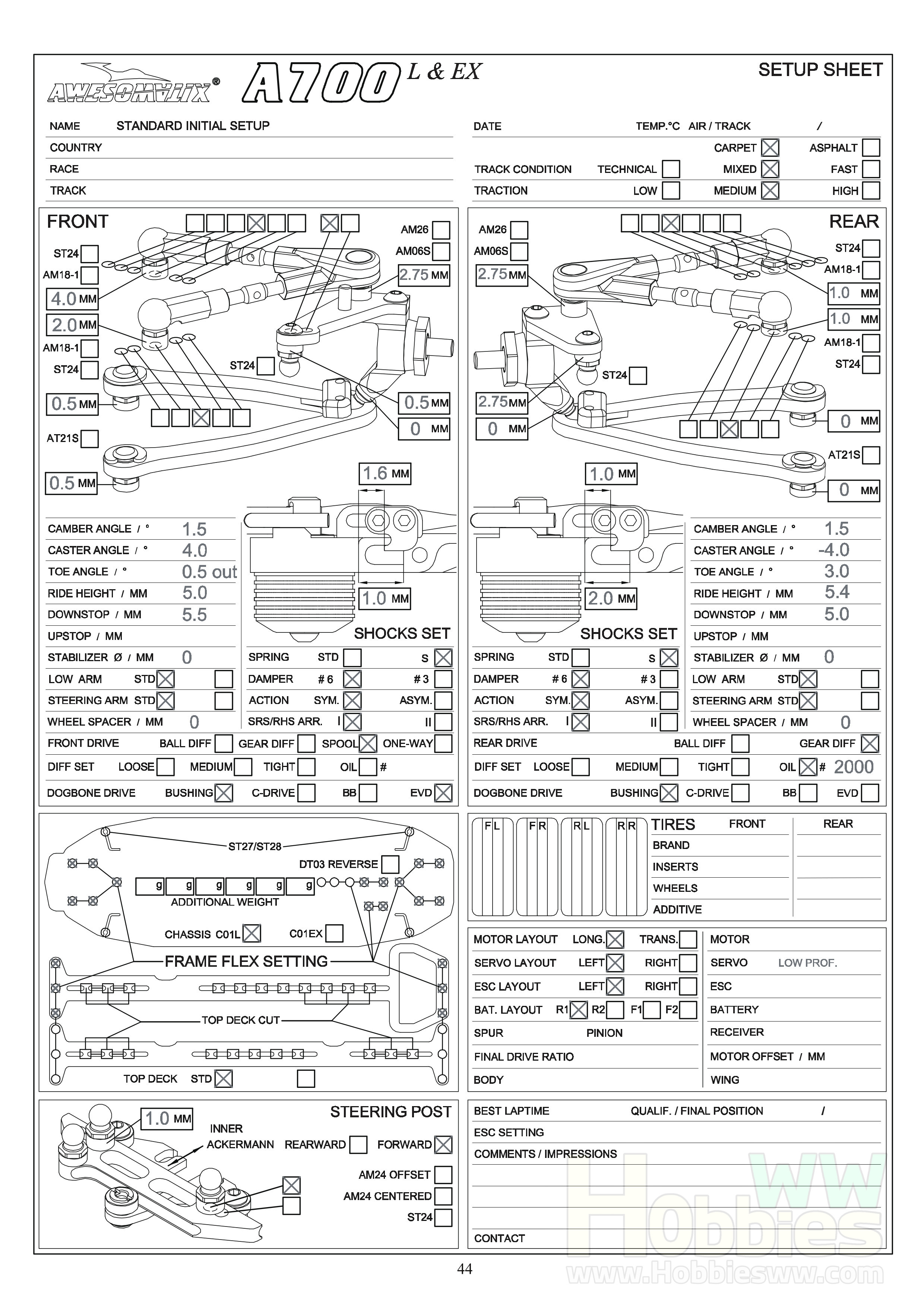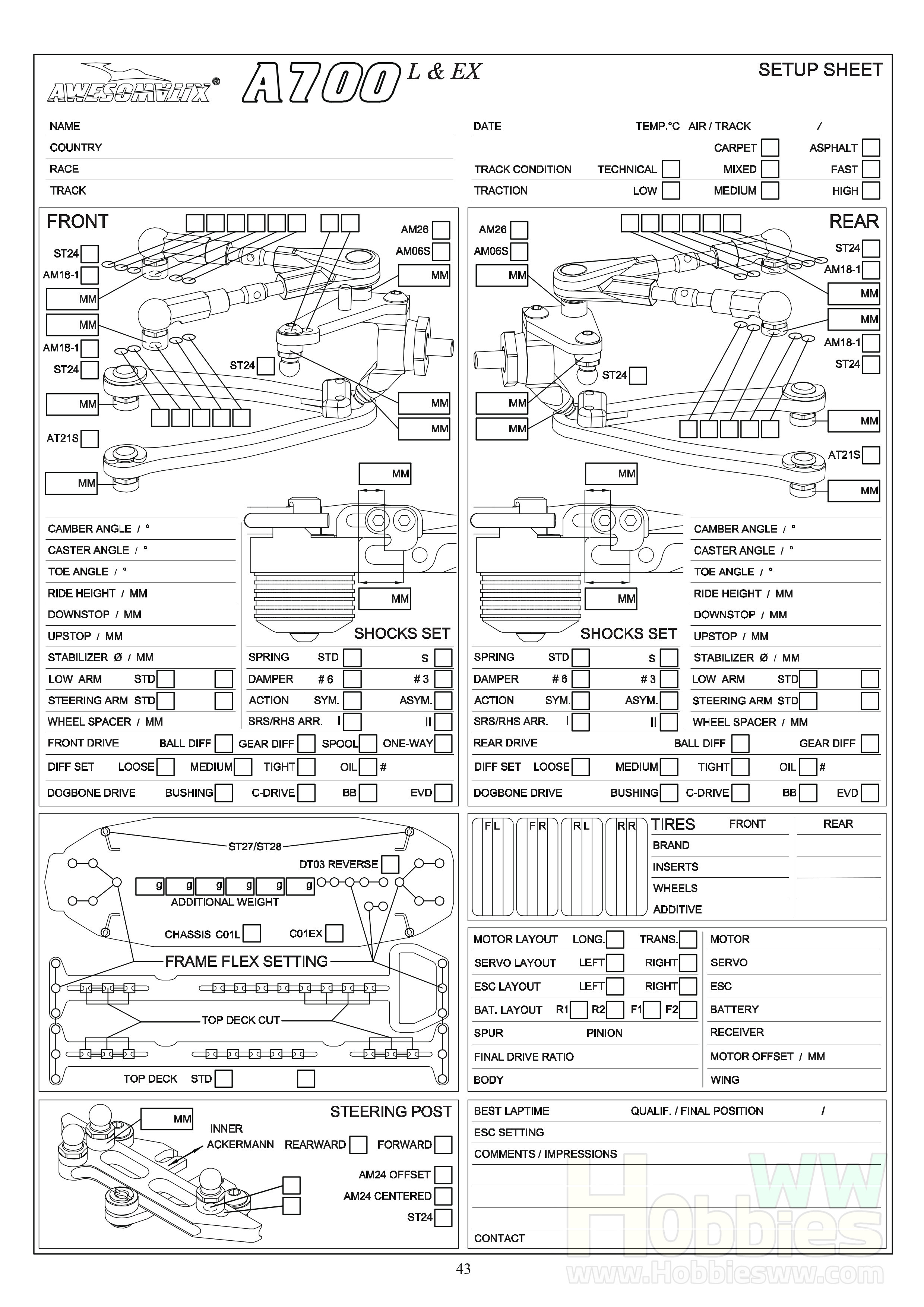 Awesomatix A700EX, A700L A700EXL Blank Setup Sheet