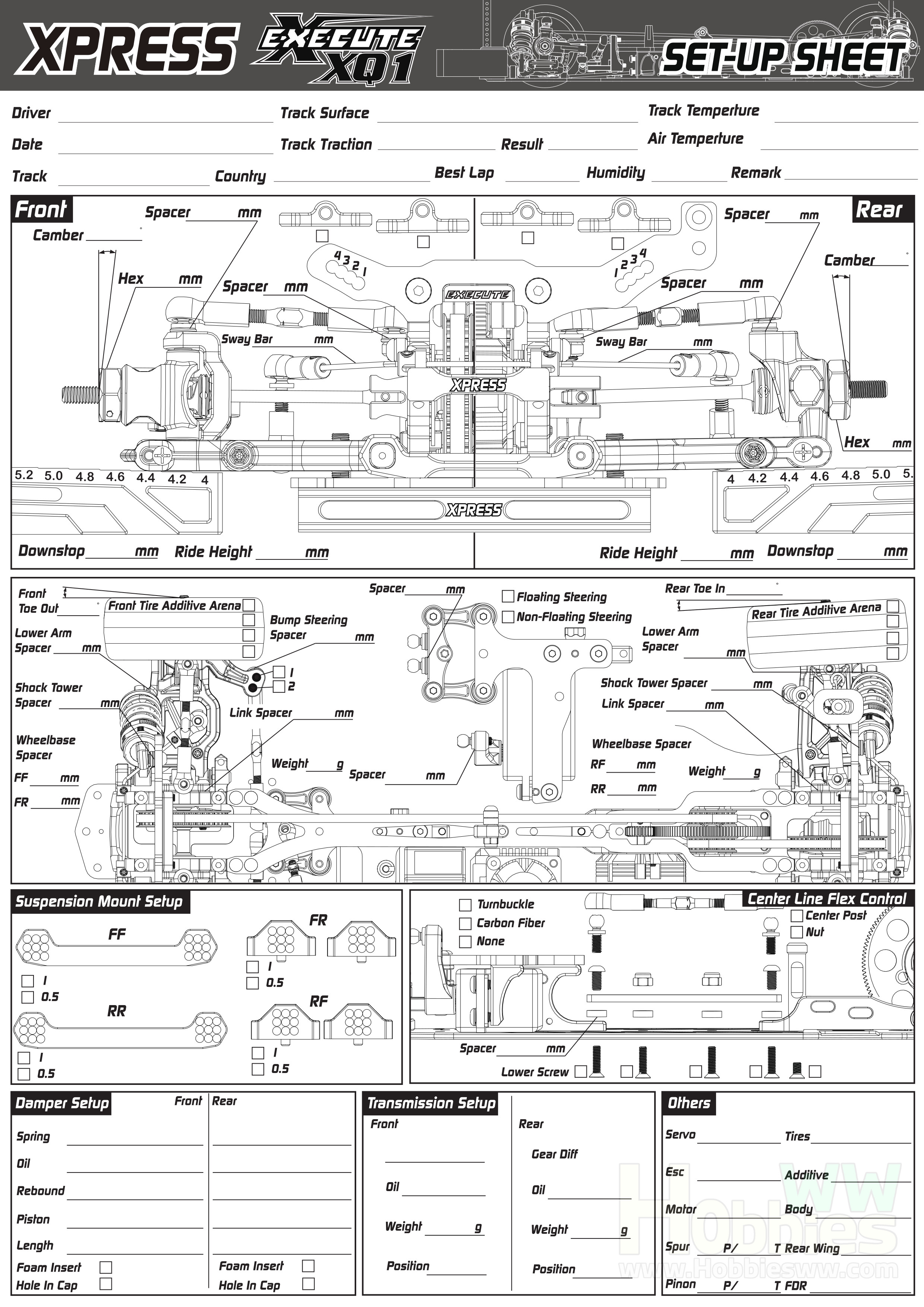 Xpress Execute XQ1 Setup Editable Blank Setup Sheet